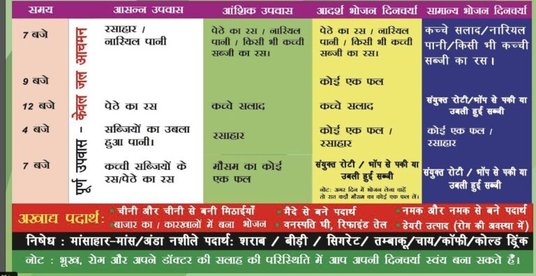 NLS Diet Charts In Hindi